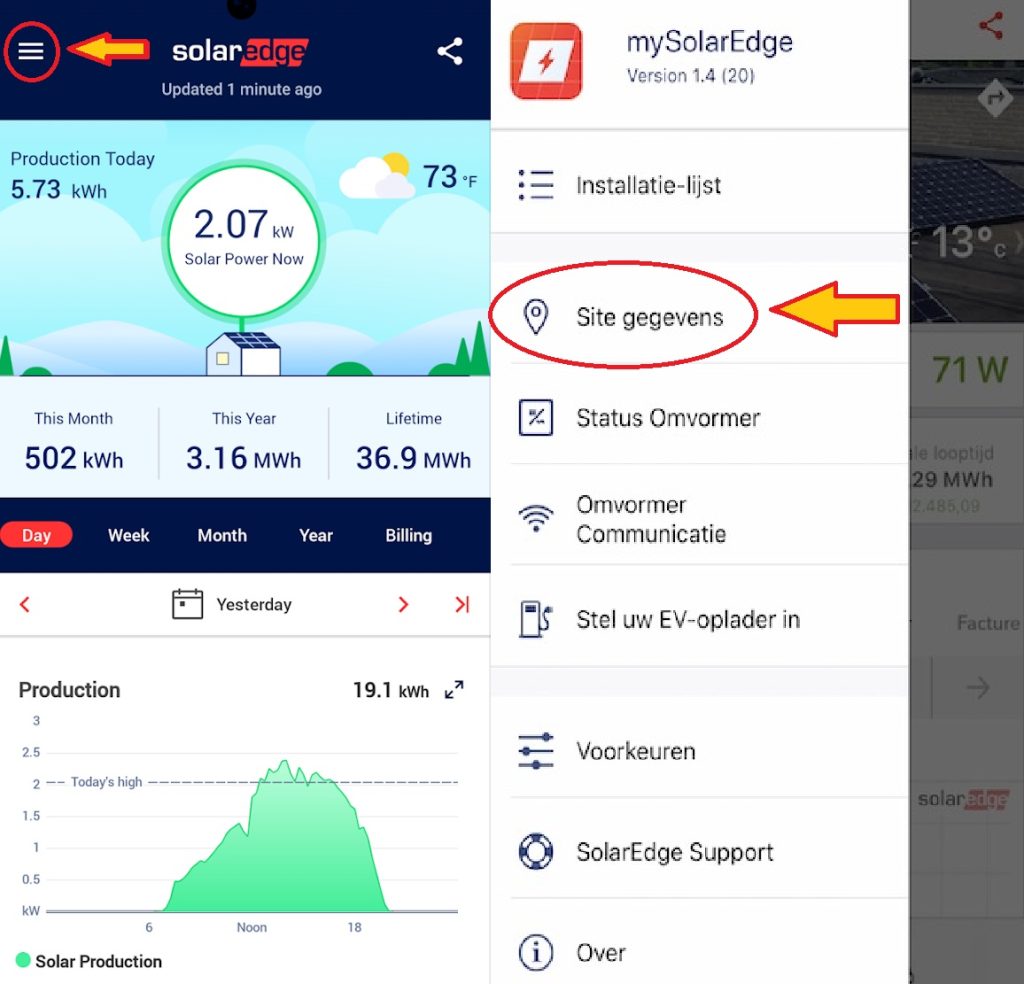 U kunt de sitenaam en -ID vinden in de mySolarEdge-app onder installatiedetails.